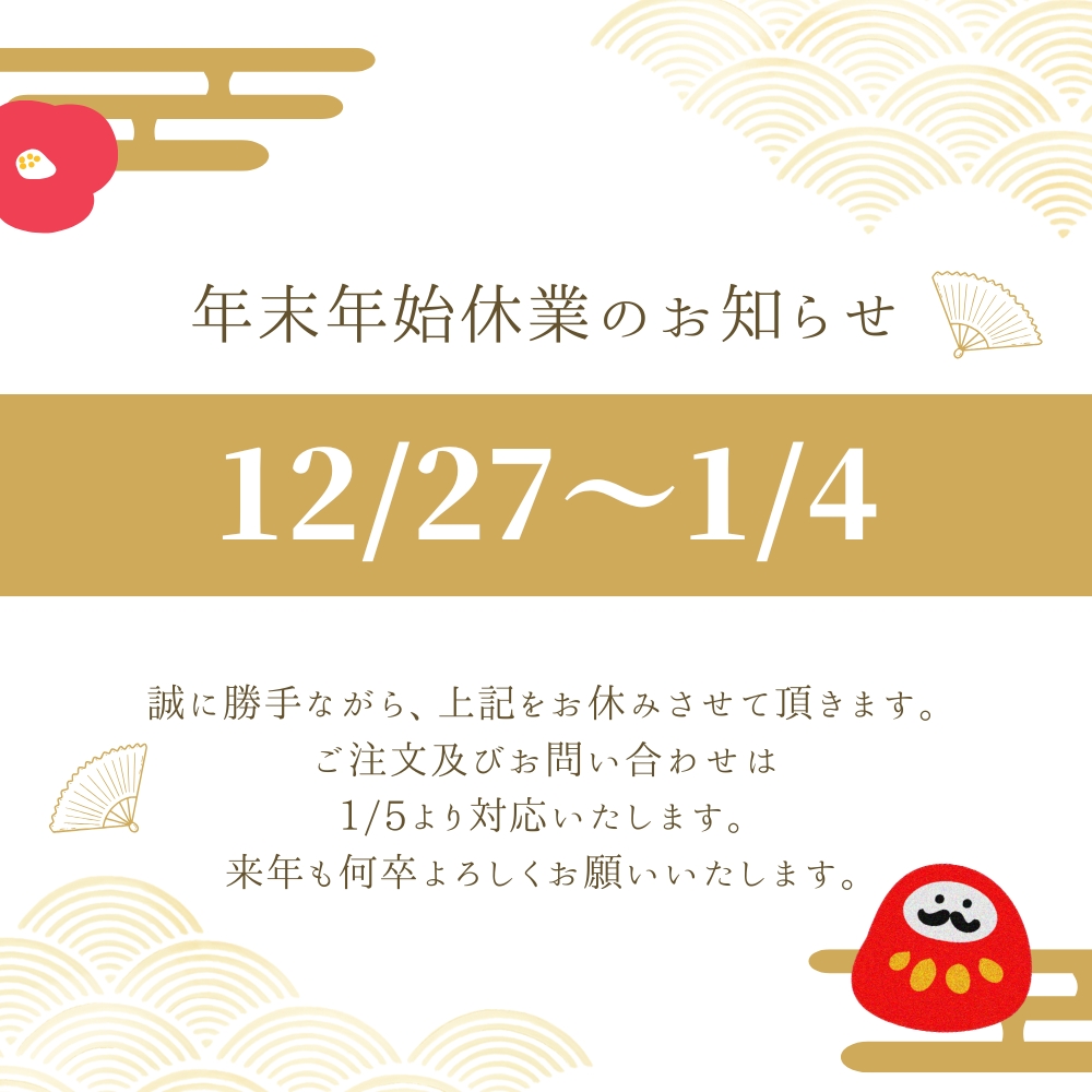 12月25日15時以降のご注文、問い合わせに関しましては休業明け1月5日より順次ご対応させていただきます。