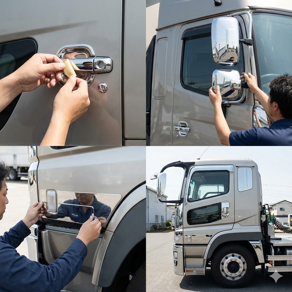 カスタムと聞くと、バンパー交換や大掛かりな電飾など、専門的な作業をイメージするかもしれません。しかし、ビギナーが挑戦すべきは、そこではありません。大型トラックカスタムの第一歩は、手軽に始められる「小さいパーツ」の「簡単取付」からが鉄則です。