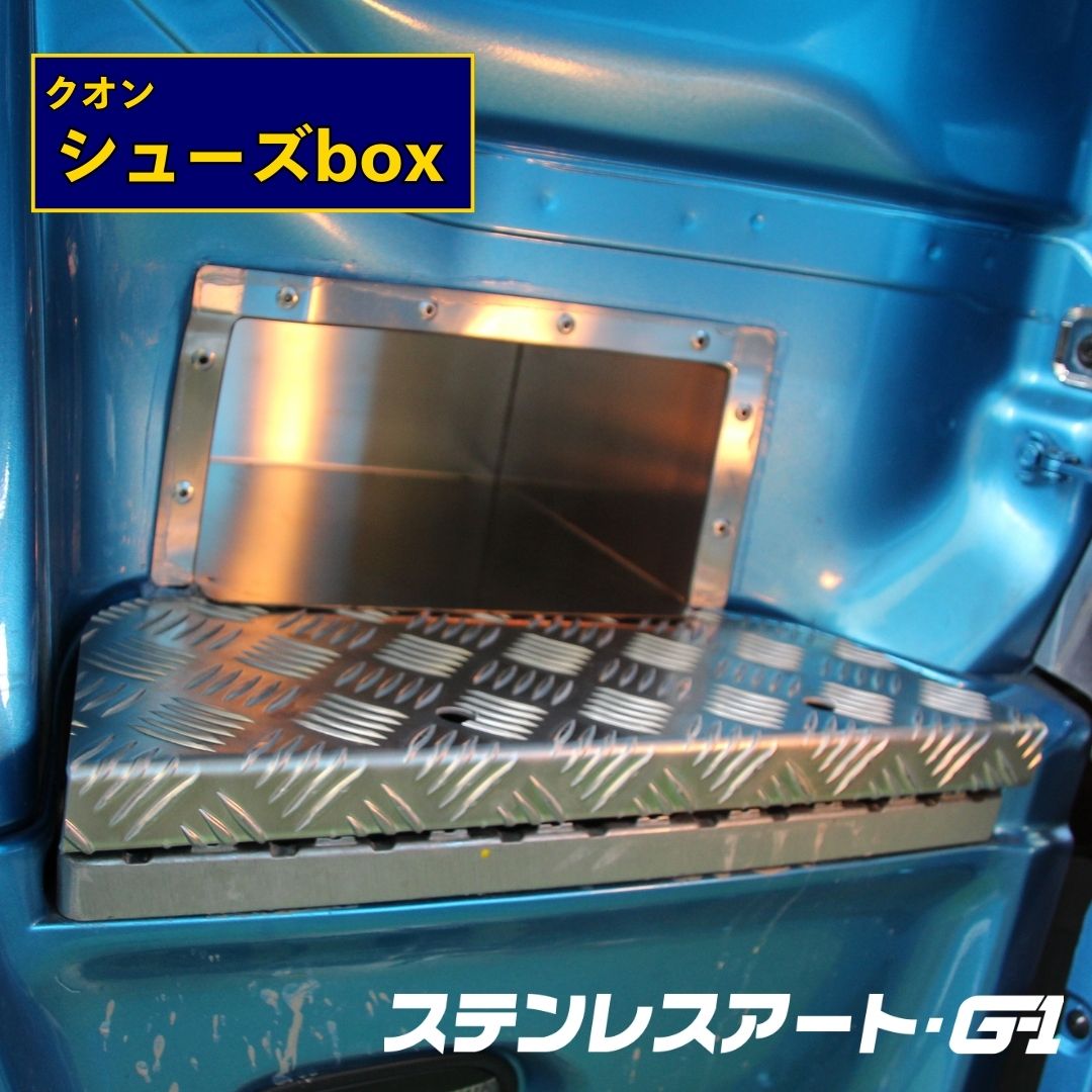 ステンレスアートG-1のシューズボックスは、すべて受注生産。職人が一つひとつ丁寧に製作するため、高い品質と車両への完璧なフィット感を実現します。実用性と耐久性を追求した無駄のない造りや、熟練の職人技による確かな仕上げなど、プロの現場を支えるためのこだわりが随所に光ります。