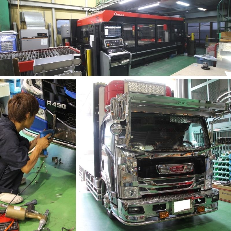 店舗では実際に製品の輝きや質感を確認できる展示があり、プロのスタッフと対面で相談しながら、自分のトラックに最適なカスタムプランを練ることができます。