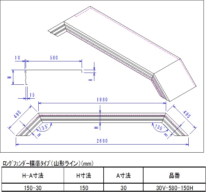 T/S製 山形ライン ロングフェンダー 標準タイプ 板厚 1.5t 鏡面/ウロコ/#400 溶接目ありR/L(1台)