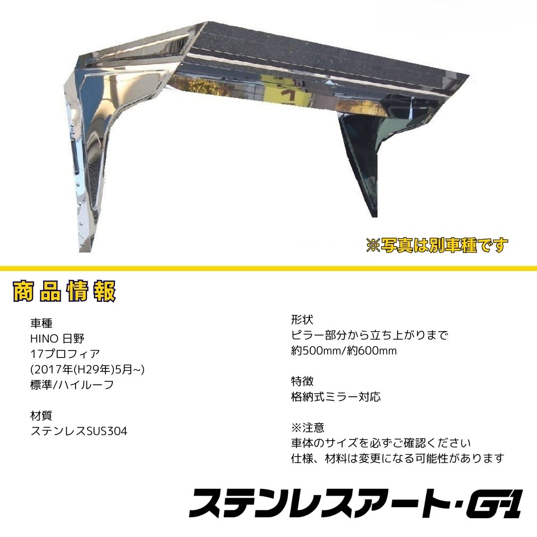 T/S製 日野 グランド プロフィア 運転席 ドアミラータイプ フロントバイザー D2E-501 格納式対応